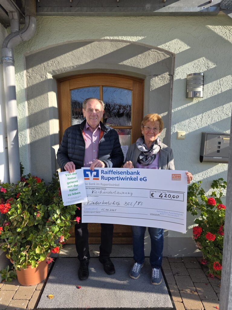 08.10.2025: Waging am See – Bergader übergibt 17.000 Euro an die Kinderkrebshilfe Berchtesgadener