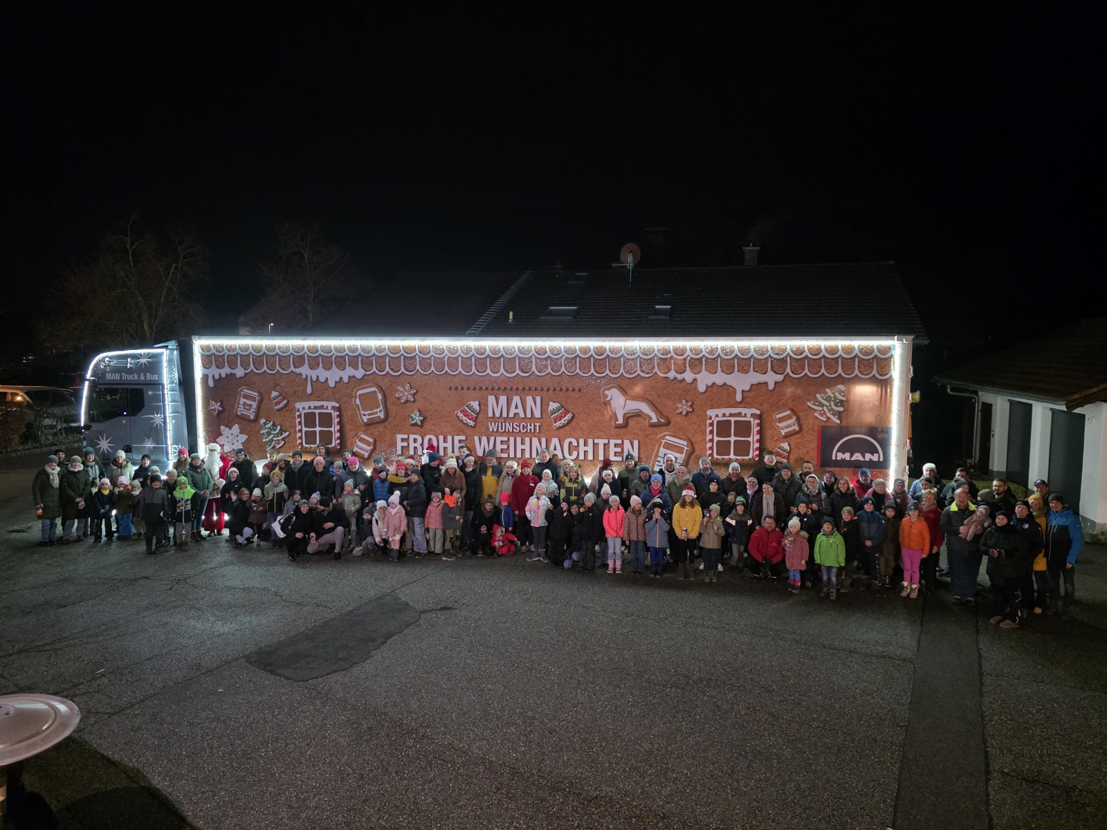 01.12.2025: Am vergangenen Montagabend sorgte der festlich geschmückte MAN-Weihnachtstruck für strahlende Augen bei Kindern, Familien und Mitarbeitern der Kinderkrebshilfe BGL und TS. Der imposante Lastwagen, liebevoll dekoriert mit hunderttausenden Lichtern und weihnachtlichen Motiven, machte im Rahmen seiner diesjährigen Benefiz-Tour Halt auf dem Vereinsgelände und verwandelte es für einige Stunden in eine kleine Weihnachtswelt.
