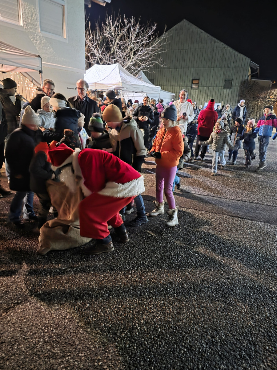 Schon beim Eintreffen des Trucks um 17:30 Uhr versammelten sich die gut 100 Personen der betroffenen Familien und ehrenamtlich Tätigen, um das besondere Ereignis mitzuerleben. Die Fahrer hatten zugegeben etwas Mühe das übergroße Fahrzeug in den Parkplatz zu lenken. Aber viel Geschick machte es dann doch möglich und so wurden die zwei Nikolaus samt Sack und Geschenken recht herzlich von allen Besuchern empfangen. „Ein herzliches Grüß Gott“, sprach auch die Vereinsvorsitzende Rosmarie Baumgartner dem hohen Besuch und auch allen Gästen aus. Der feierliche Abend wurde ganz wunderbar umrahmt von der Oberteisendorfer Bläsergruppe, welche mit stimmungsvollen Weisen diesen besonderen Abend noch einmal mehr zum Leuchten brachte. An Speis und Trank mangelte es ebenso nicht und so wurden Groß und Klein mit sehr guten Hofwirt-Bosnas, Gebäck, Punsch und Glühwein von den emsigen Ehrenamtlichen umsorgt. Die Kinder und auch Erwachsenen waren vom Anblick und dem Ambiente hellauf begeistert und so sorgte der hinterlassene Eindruck bestimmt auch zu späterer Stunde Stoff für die Träume der Kleinen und vielleicht auch Großen Besucher. Ein herzliches Dankeschön sagt die Kinderkrebshilfe BGL + TS.